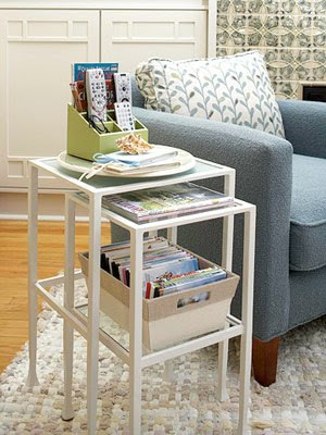 A primeira idéia é uma graça! É mesmo difícil manter espaços pequenos organizados... As cestinhas também são lindinhas e mantém toda bagunça escondida, haha